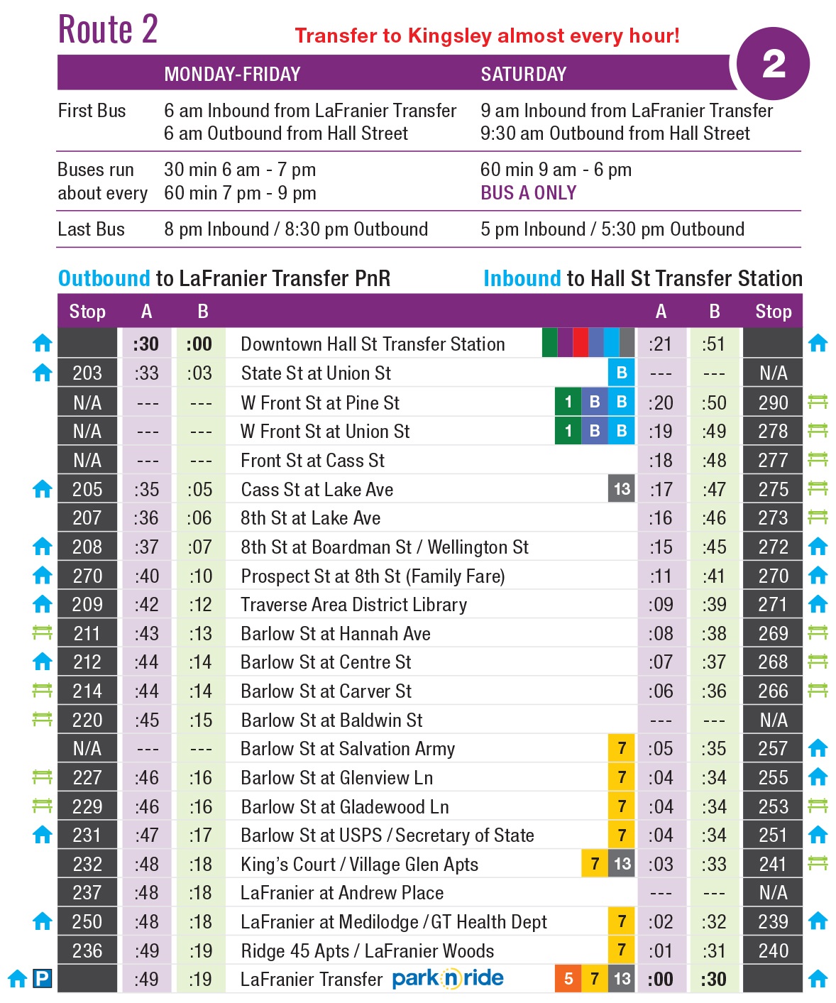 - Route 2: Downtown Traverse City to Barlow Rd & Lafranier Park-n-Ride