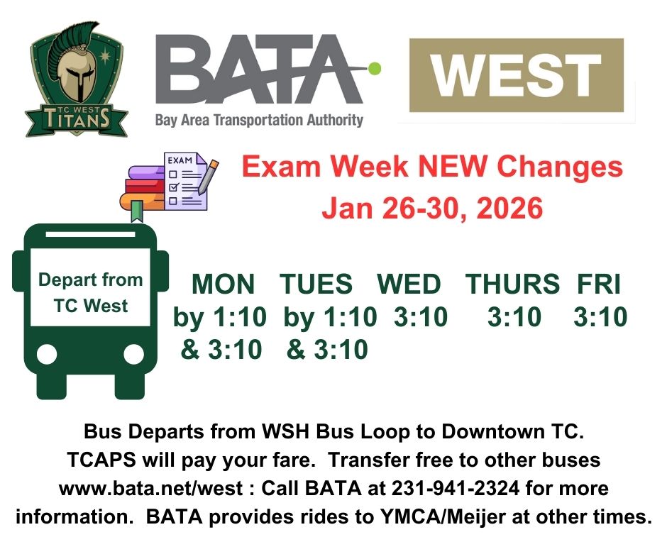 - WEST - Traverse City West Senior High School and The Children's House Montessori School (Scroll below for modified WSH MLK/Exam week pickup schedule)